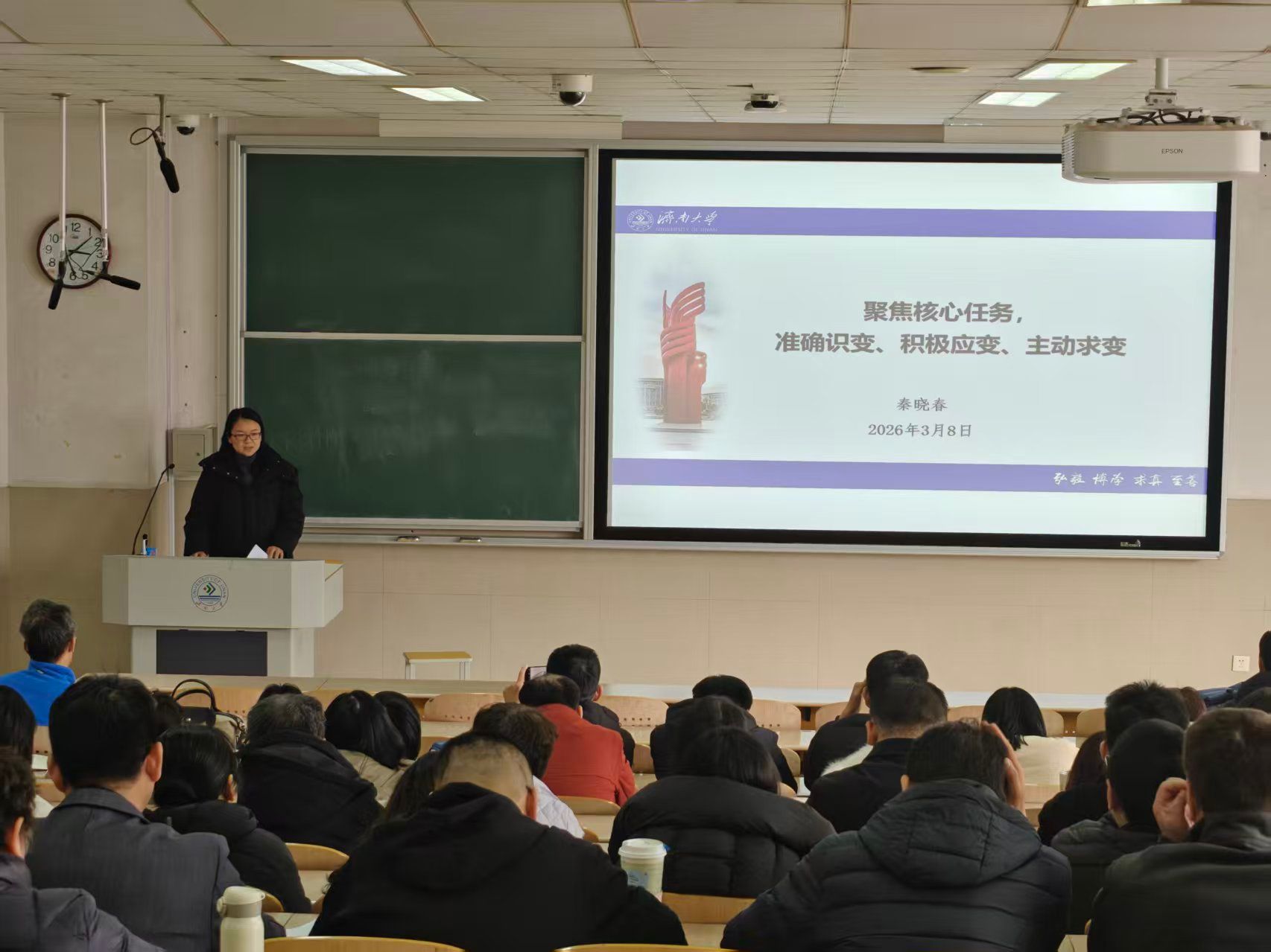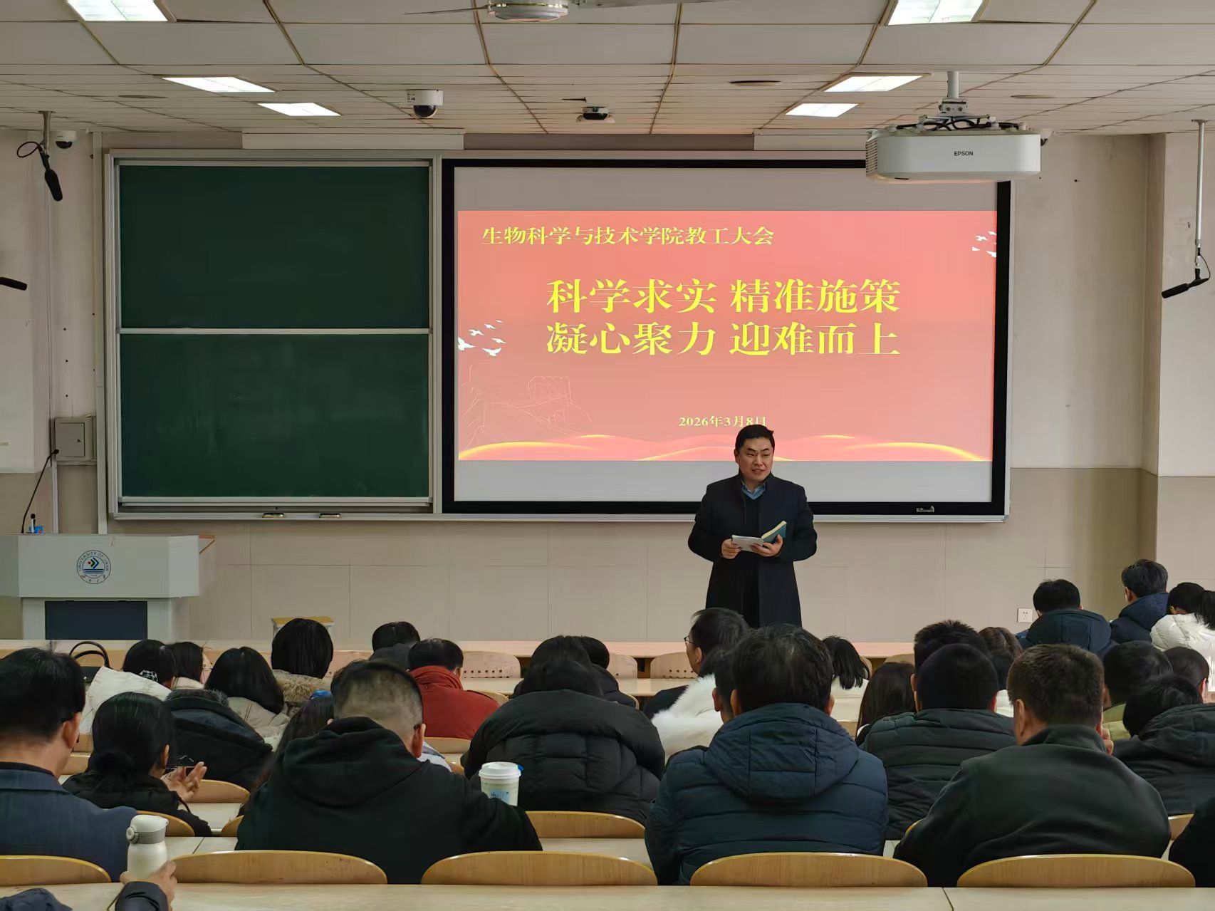 院长秦晓春作了题为《聚焦核心任务,准确识变、积极应变、主动求变》的报告,系统梳理了世俱杯买球官网网站2025年各项任务指标的完成情况,从全面提升人才培养质量等八个方面对2026年工作进行部署。她指出,世俱杯买球官网网站发展处于关键时期,必须认清形势、抢抓机遇,切实增强推动世俱杯买球官网网站跨越发展的使命感与紧迫感。新学期要在巩固前期成果的基础上,锚定生物学博士点申报核心任务,奋力突破线性增长路径,推动世俱杯买球官网网站各项事业实现“大”进步。